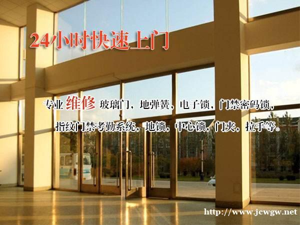 (1)玻璃门维修:更换门窗玻璃,更换玻璃门地弹簧,各种型号地弹簧,玻璃门夹、玻璃门拉手、大门夹平衡杆、天柱。维修门禁系统、上下大小门夹、地锁,门锁、门夹锁、中央锁、各种门拉手