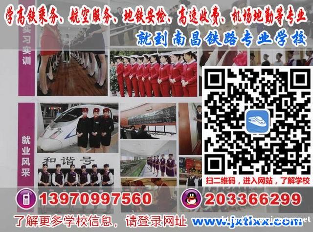 南昌铁路保安中等专业学校(咨询电话:13970997560喻老师 QQ咨询:203366299)是全国唯一由铁路系统办的铁路、保安普通中等专业学校,主办铁路、安检等专业体系,面向铁路、安检、航空服务、高速公路收费员、地铁交通、邮轮海乘等行业培养中高技人才。